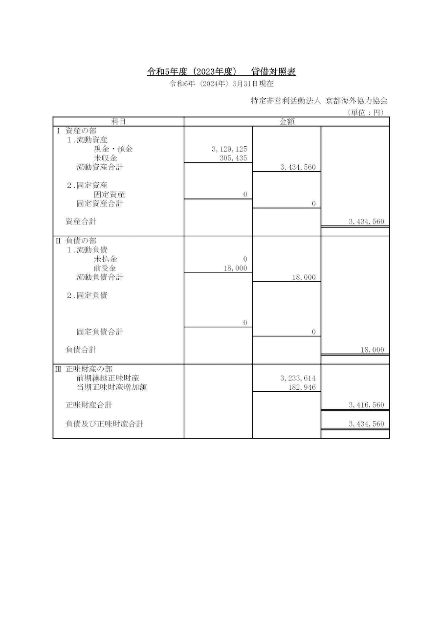 「特定非営利活動促進法の一部を改正する法律」(平成28年6月)に基づき、貸借対照表を当会ホームページ上に公開しております。