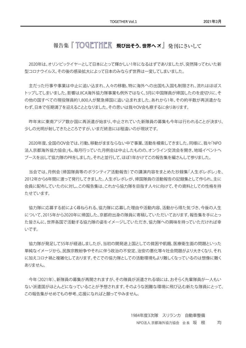 JICA海外協力隊活動報告集「TOGETHER 飛び出そう世界へ」Vol.1